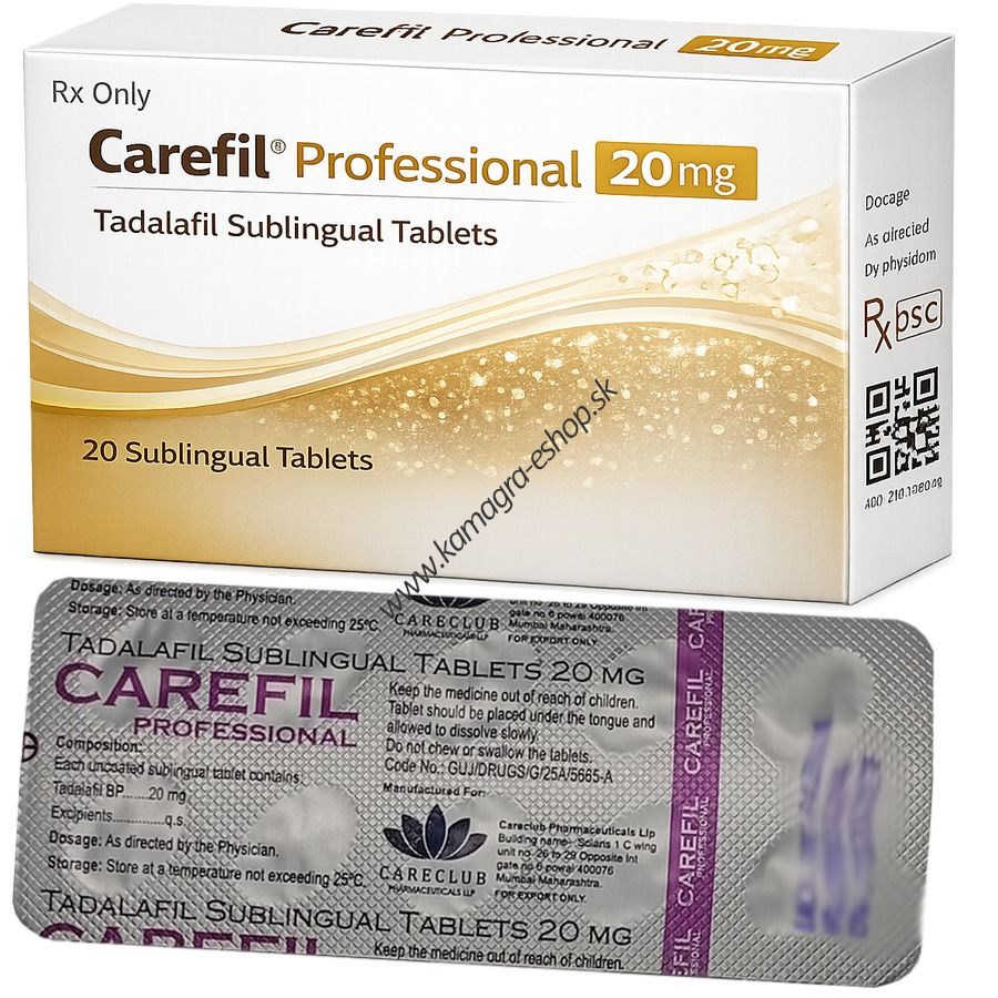 Carefil 20mg Professional Subligvál je najrýchlejšia náhrada (genericum) Cialisu 20mg Eli Lilly. Obsahuje tú istú účinnú látku ako Cialis 20mg (Tadalafil)