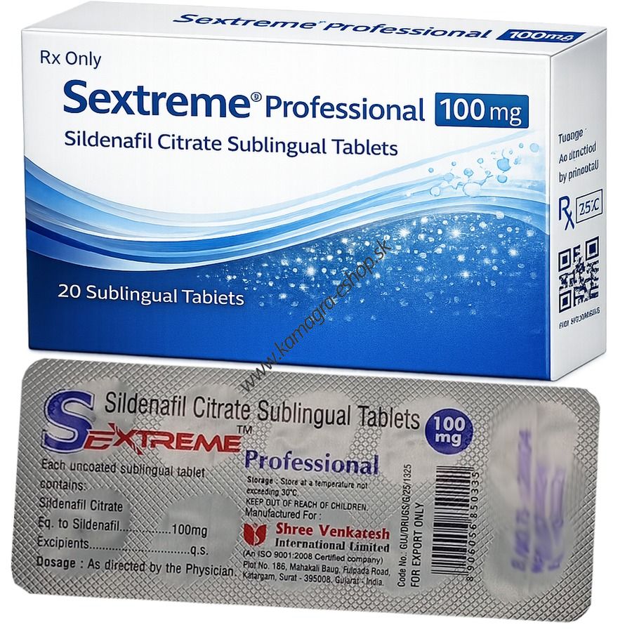 Sextreme Professional 100mg Subligvál je najrýchlejšia náhrada (genericum) Viagry Pfizer 100mg. Obsahuje tú istú účinnú látku ako Viagra (Sildenafil Citrate)