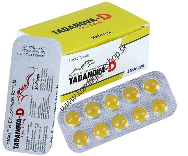 Tadanova D 80mg Last Long je vylepšený generický Cialis 20mg o 60mg Dapoxetine, teda ako dva lieky v jednej tablete. Dapoxetine je už dlho účinným liekom predčasnej ejakulácie a lepšej kontroly nad predčasnou ejakuláciou. Tadanova 80mg Last Long úspešne lieči impotenciu a problémy s erekciou (erektilnej dysfunkcii) a po jeho užití je umožnené skoro každému mužovi dosiahnuť veľmi kvalitné a dlhotrvajúce erekcie a užiť si tak lepšie a dlhší sexuálny styk.