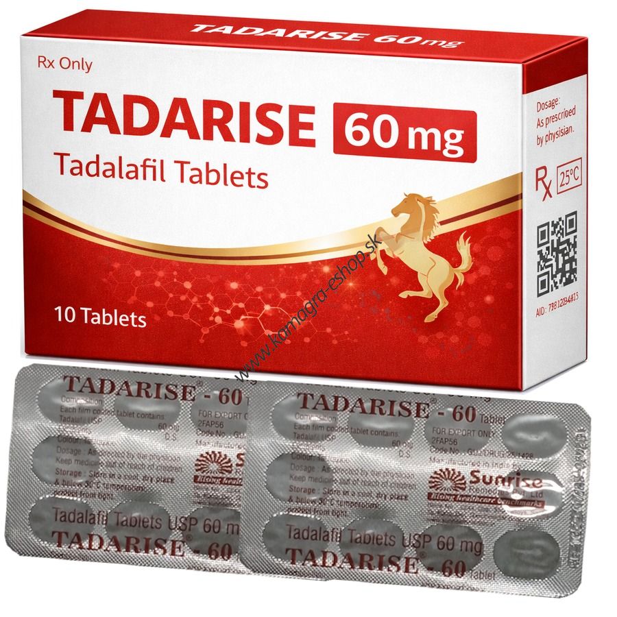 Tadarise 60mg (Tadalafil) je vyrábaný spoločnosťou Sunrise a je to najobľúbenejší náhrada (generikum) Cialisu (Tadalafil). Tadarise je liek pre mužov ktorí trpia poruchami erekcie alebo ak erektilnou dysfunkciou a po jej užití je možné prakticky každému mužovi dosiahnuť kvalitné erekcie a teda si užiť lepší sexuálny styk.