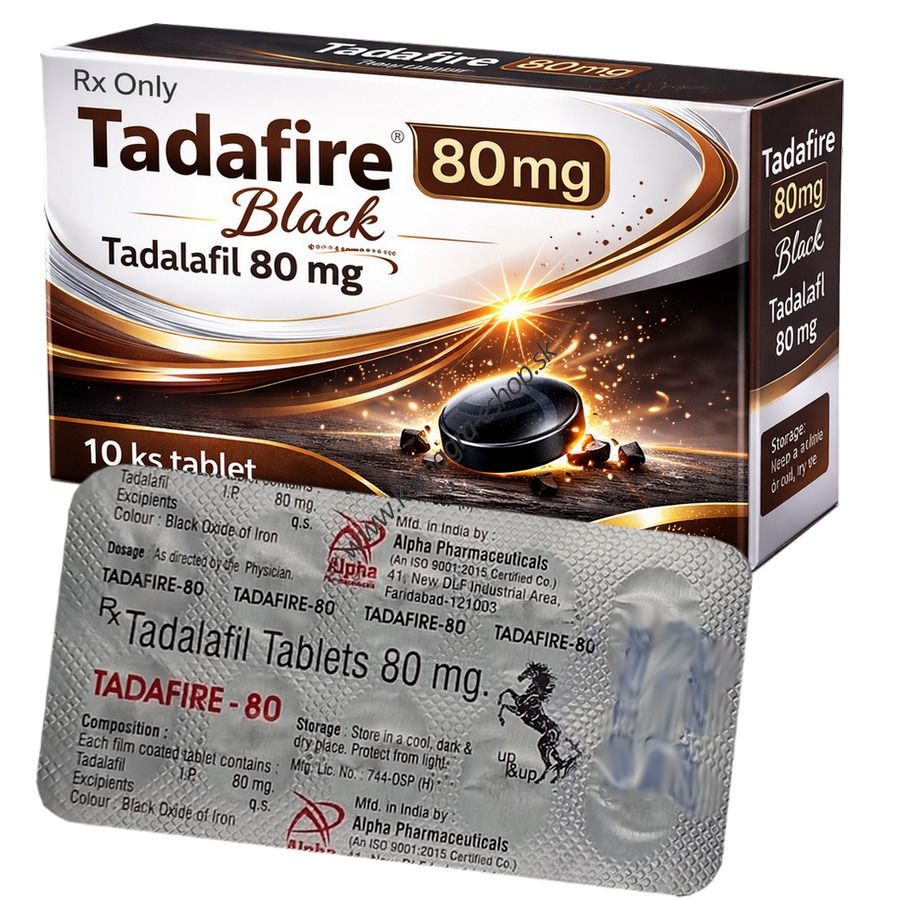 Tadafire 80mg Black (Tadalafil) je vyrábaný spoločnosťou Alpha Pharmaceuticals a je to najobľúbenejší náhrada (generikum) Cialisu (Tadalafil). Tadafire 80mg extra je liek pre mužov ktorí trpia poruchami erekcie alebo ak erektilnou dysfunkciou a po jej užití je možné prakticky každému mužovi dosiahnuť kvalitné erekcie a teda si užiť lepší sexuálny styk.